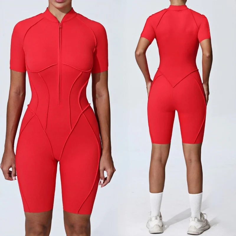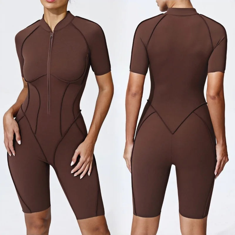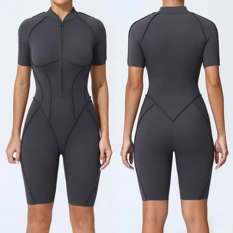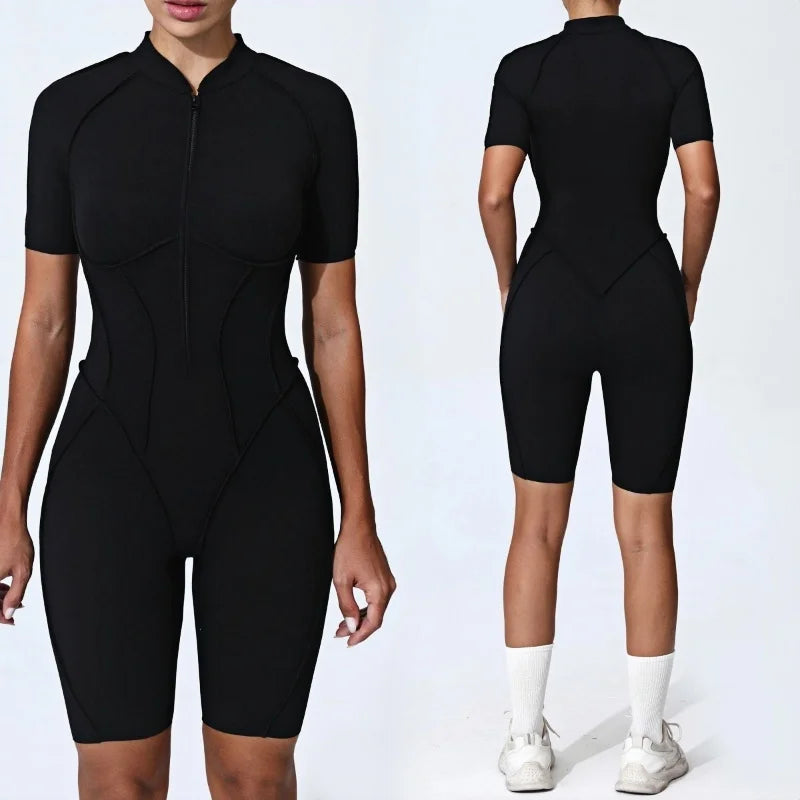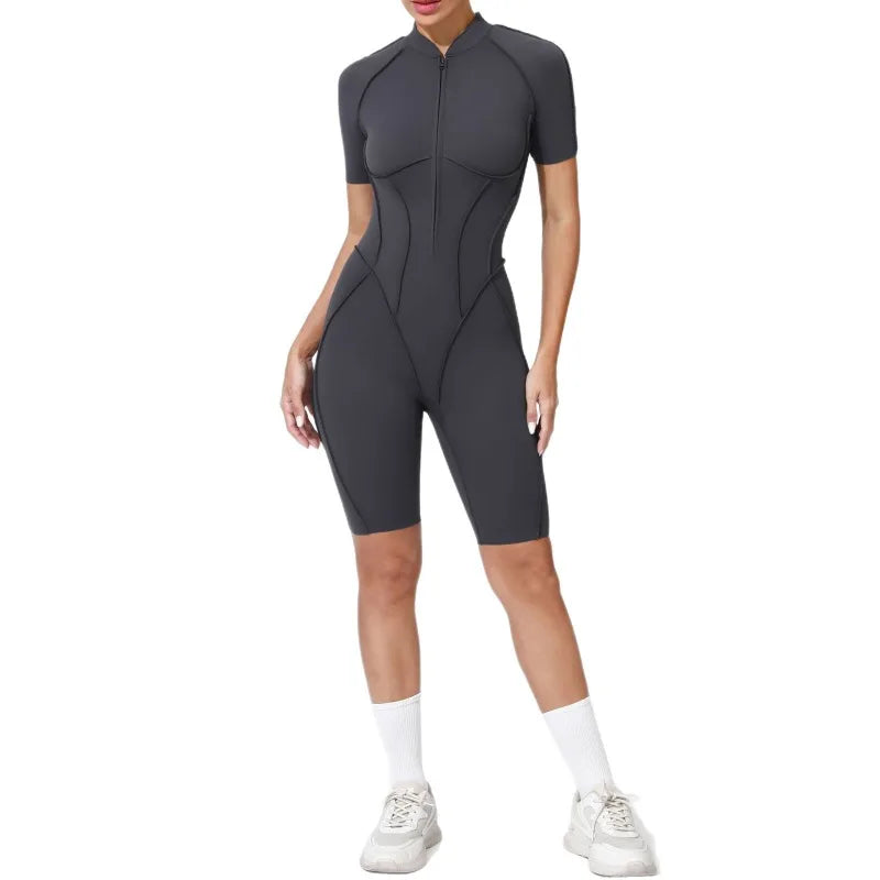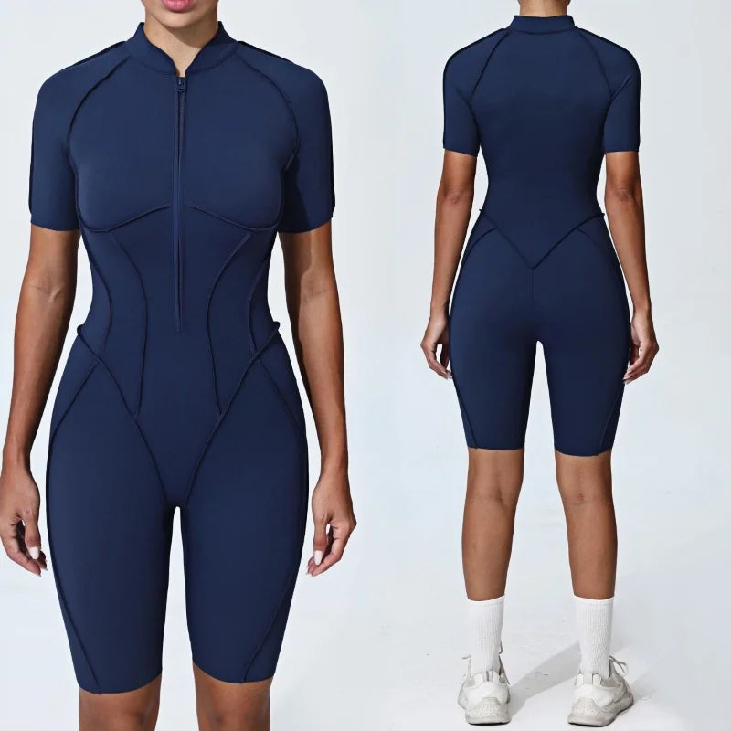 Zipper Yoga Jumpsuit Set For Women Breathable Quick Dry Gym